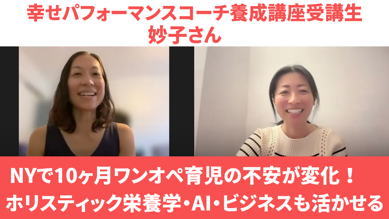 NYで10ヶ月ワンオペ育児の不安が変化!ホリスティック栄養学・AI・ビジネスも活かせる 幸せパフォーマンスコーチ養成講座 妙子さん