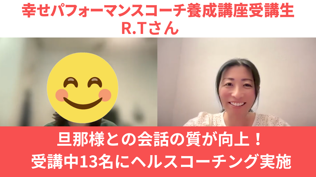 今日は幸せパフォーマンスコーチ養成講座を受講されましたR.Tさんにインタビューさせていただきました。R.Tさんありがとうございました。