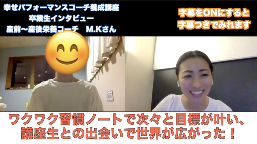 ワクワク習慣ノートで目標が叶い、講座生との出会いで世界が広がった!幸せパフォーマンスコーチ養成講座卒業生 産前〜産後栄養コーチ・MKさん