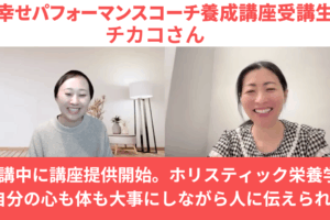 今回は、ホリスティック栄養学の考えを元にした、セルフコーチング・コーチング力とビジネスも学べる、「幸せパフォーマンスコーチ養成講座」を受講された、小林 未央子さんの感想をご紹介します。
