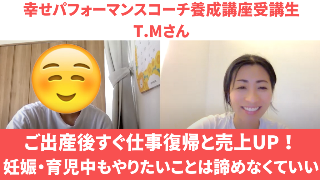 ご出産後すぐに仕事復帰と売上UPの秘訣!幸せパフォーマンスコーチ養成講座受講生 T.Mさん