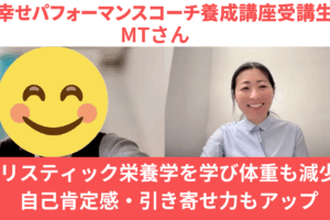 今日は、ホリスティック栄養学の考えを元にした、セルフコーチング・コーチング力とビジネスも学べる、「幸せパフォーマンスコーチ養成講座」を受講された、ホリスティック・ライフキャリアコーチのKumikoさんの感想をご紹介します。