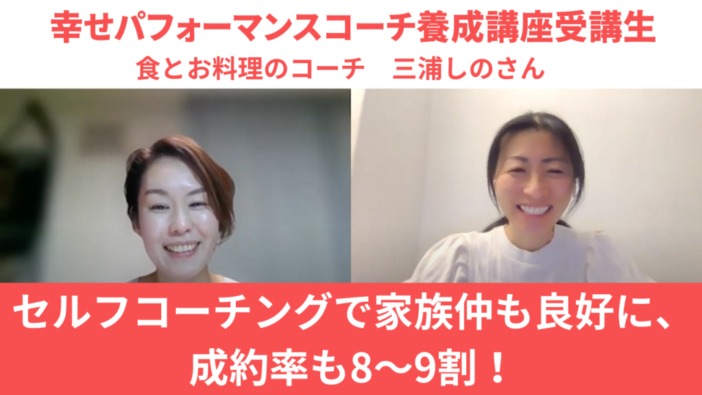 セルフコーチングで家族仲も良好になり、ビジネスでは成約率も8〜9割に!幸せパフォーマンスコーチ養成講座受講生 食とお料理のコーチ 三浦しのさん