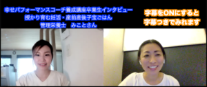 卒業生インタビュー:1ヶ月でお客様とご契約。ハッピーサークルが成果に繋がる! 幸せパフォーマンスコーチ養成講座卒業生【授かり育む妊活・産前産後子宝ごはん 管理栄養士 みことさん】