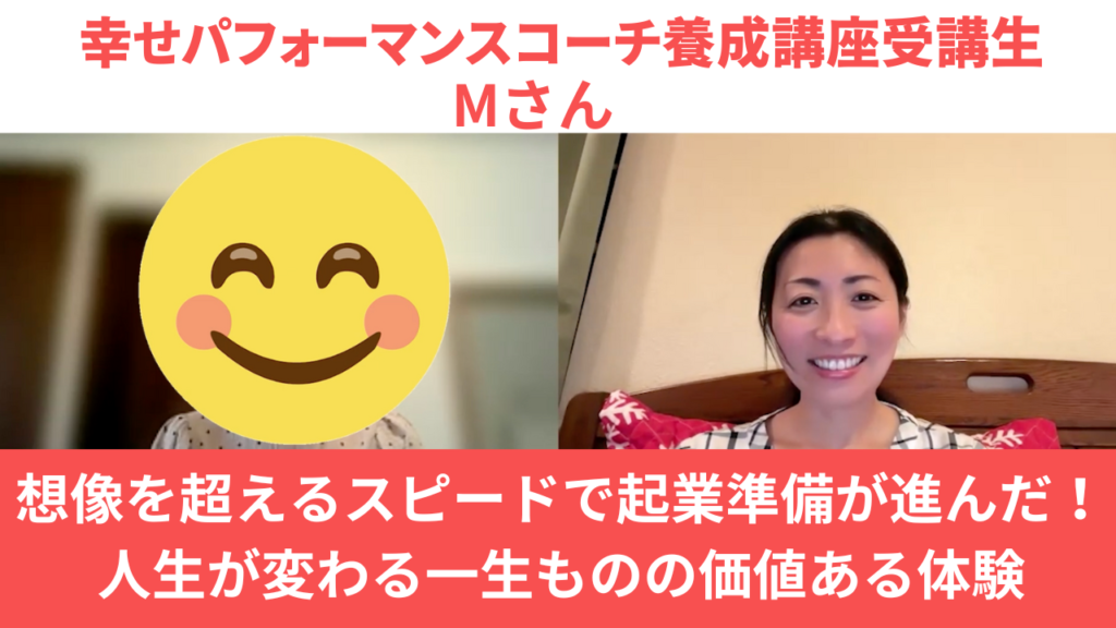 想像を超えるスピードで起業準備が進んだ!人生が変わる一生ものの価値ある体験 幸せパフォーマンスコーチ養成講座 受講生 Mさん