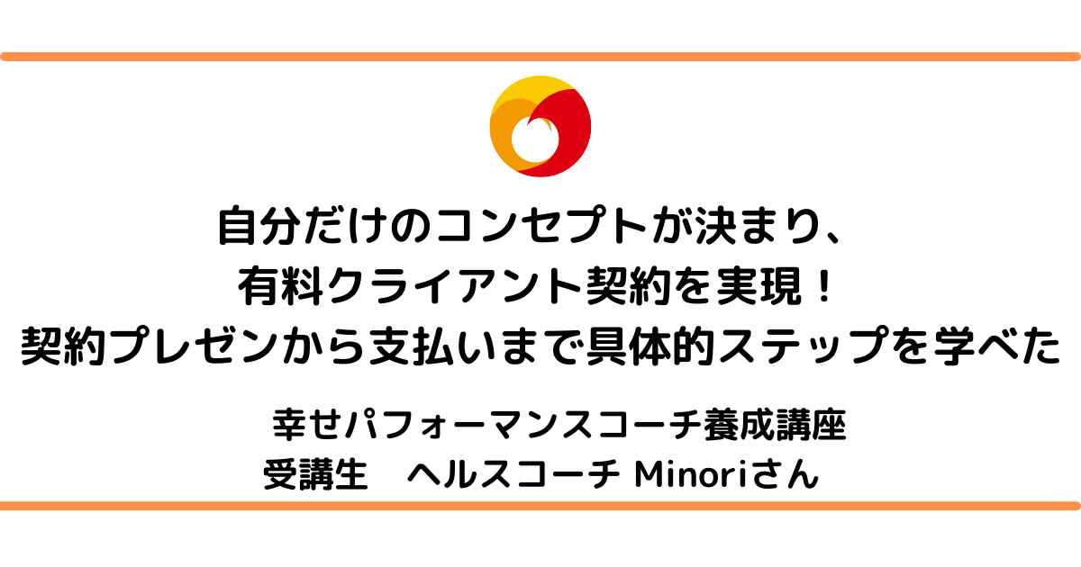今回は、ホリスティック栄養学の考えを元にした、セルフコーチング・コーチング力とビジネスも学べる、「幸せパフォーマンスコーチ養成講座」を受講された、ヘルスコーチのMinoriさんの感想をご紹介します。