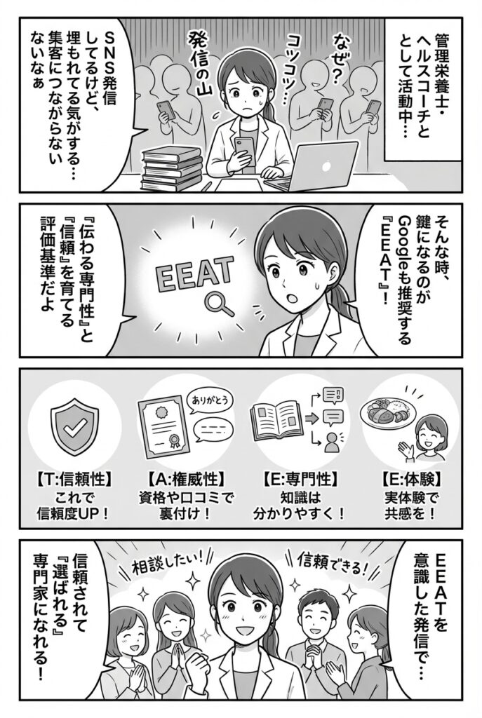 Googleからも、お客様からも信頼されるEEATを意識して、あなたの信頼を築く発信、今日からはじめましょう。