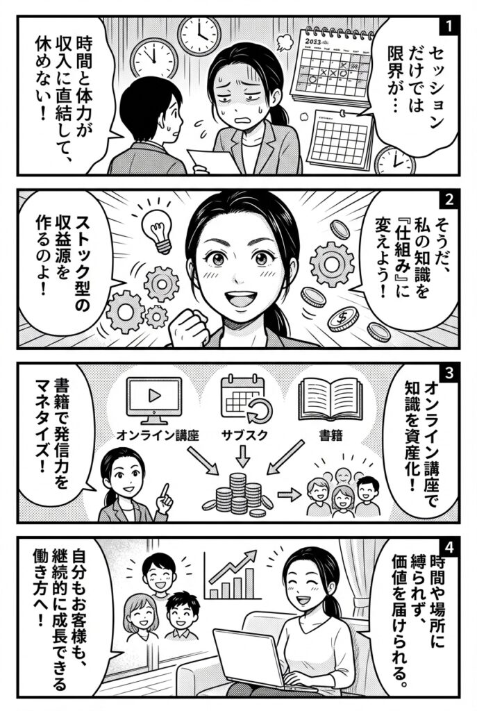 「セッションだけでは安定した収益を作りにくい」と感じているのではないでしょうか。